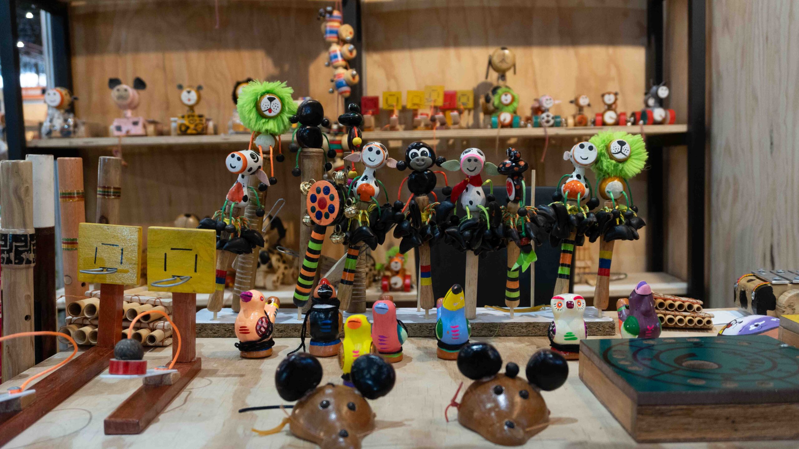 Materia prima: madera café, eucalipto, semillas achirilla, ojo de buey, chocho rojo.